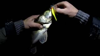 Судак ночью на воблер в конце ноября. Москва река по зимнему уровню.