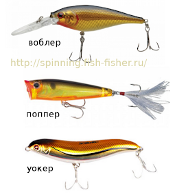 Волкер – близкий родственник поппера. Он тоже предназначен для ловли хищной рыбы с поверхности воды в сильно заросших или закоряженных местах. Но в отличие от поппера у этой приманки нет громко плюхающей выемки в носовой части, небольшое углубление есть лишь у некоторых моделей. Отсутствует и лопасть – основной рабочий элемент классических воблеров. Внешне это маленькая искусственная рыбка, очень точно имитирующая прототип.